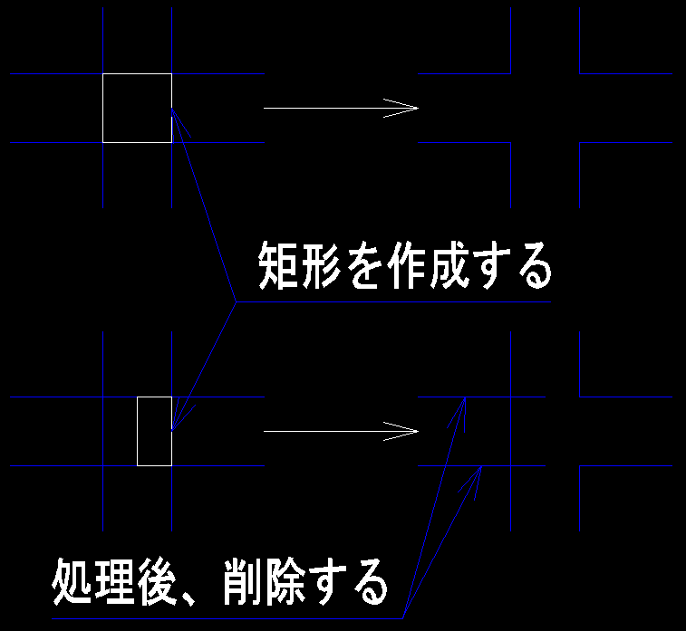*^C^C$M=setenv;to;0;$(if,$(=,$(getenv,to),0),ucs;w;join;\;select;non;@;non;@;;draworder;p;;b;rectang;nea;@;'setenv;p1;$M="""$(getvar,lastpoint)""";\setenv;p3;$M="""""""$(getvar,lastpoint)""""""";;to;1)$(if,$(=,$(getenv,to),1),;sw1;$(if,$(<,$(index,0,$(getenv,p3)),$(index,0,$(getenv,p1))),1;;to;2,0;;to;3))$(if,$(=,$(getenv,to),2),;sw2;$(if,$(<,$(index,1,$(getenv,p3)),$(index,1,$(getenv,p1))),0;;to;4,1;;to;4))$(if,$(=,$(getenv,to),3),;sw2;$(if,$(<,$(index,1,$(getenv,p3)),$(index,1,$(getenv,p1))),2;;to;4,3;;to;4))$(if,$(=,$(getenv,to),4),;p1;$(getenv,p1)^H^H;;p3;$(getenv,p3)^H^H;;to;5)$(if,$(=,$(getenv,to),5),;p2;$M=$(nth,$(getenv,sw2),$(index,0,$(getenv,p3))""","""$(index,1,$(getenv,p1)),$(index,0,$(getenv,p1))""","""$(index,1,$(getenv,p3)),,);;to;6)$(if,$(=,$(getenv,to),6),;p2;$M=$(nth,$(getenv,sw2),,,$(index,0,$(getenv,p1))""","""$(index,1,$(getenv,p3)),$(index,0,$(getenv,p3))""","""$(index,1,$(getenv,p1)));;to;7)$(if,$(=,$(getenv,to),7),;p4;$M=$(nth,$(getenv,sw2),$(index,0,$(getenv,p1))""","""$(index,1,$(getenv,p3)),$(index,0,$(getenv,p3))""","""$(index,1,$(getenv,p1)),,);;to;8)$(if,$(=,$(getenv,to),8),;p4;$M=$(nth,$(getenv,sw2),,,$(index,0,$(getenv,p3))""","""$(index,1,$(getenv,p1)),$(index,0,$(getenv,p1))""","""$(index,1,$(getenv,p3)));;to;9)$(if,$(=,$(getenv,to),9),erase;l;;lengthen;dy;non;$(getenv,p1);non;$(getenv,p2);;;;non;$(getenv,p4);non;$(getenv,p3);;setenv;to;10)$(if,$(=,$(getenv,to),10),break;non;$(getenv,p2);f;non;$(getenv,p2);non;$(getenv,p3);ucs;p;^Csetenv;to;0)^M